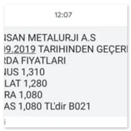 - Yeni fiyatlar sitemize eklenmeden önce üye olan firma veya şahıslara SMS ile bildirim yapılır (Öncelikli Haber).